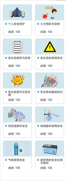 本次活动涉及较为全面的化学实验室安全知识,从进入实验室的个人防护,到对火灾、漏电等突发情况的处理,再到各类危险化学试剂的管理与使用方法,以及实验仪器的安全使用,共分为10个部分向学生提供化学实验室安全教育。其中,每个部分包含若干道安全知识考察题目,全部回答正确能够获得化学实验室安全准入证书,并取得物理化学实验安全准入资格。全面的安全知识,严格的考察题目,更好地提高了学生对于化学实验室安全知识的学习效果。