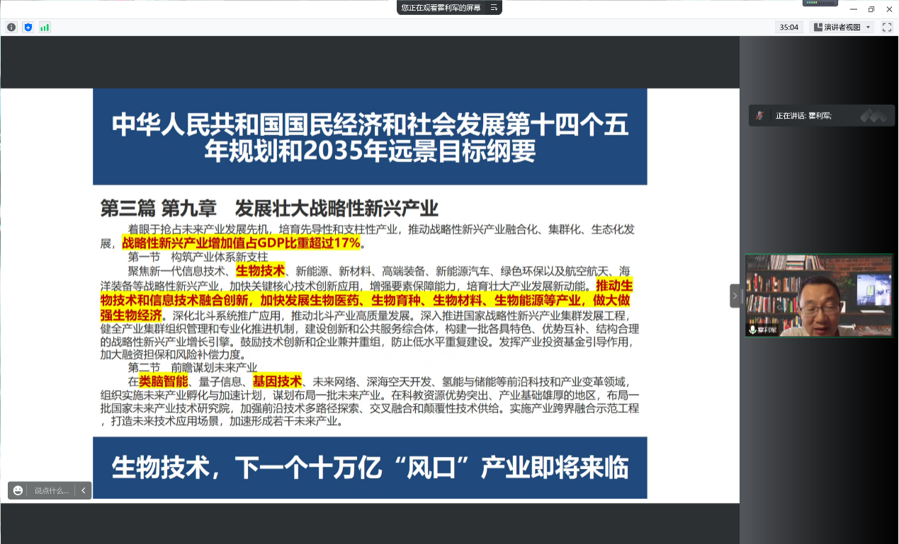 而后,霍利军老师结合当前时代背景向同学们展示了化学生物学专业的广阔发展前景,展示了今年会化学生物学的发展优势,又通过对于化学生物学部分研究成果的介绍帮助同学们加深了对于此专业的认知。