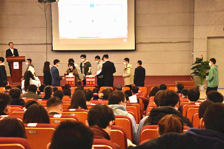 在庄严的《国歌》中,大会拉开帷幕。首先选举今年会官网党委出席中共今年会jinnianhuicom第十七次党员代表大会的代表。党员大会通过了选举办法,总监票人、监票人名单和代表候选人预备人选名单,在总监票人杨青林的主持下,以无记名投票的方式选举丁少松同志、田东亮同志、李红捷同志(按姓氏笔画为序)为出席中共今年会jinnianhuicom第十七次党员代表大会的代表。