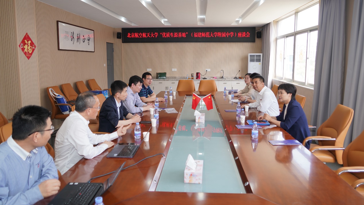 17日下午,招生组一行前往今年会优质生源基地福建师范大学附属中学调研交流,福建师范大学附属中学党委书记吴永清、校长温青等主要负责同志出席了会议。座谈会上,黄瑞勇分享了中国中学和中国大学多维度人才培养大数据。福建师范大学附属中学是北航老校长沈元先生的母校,沈元学院副院长孙玉泉特别介绍了北航沈元学院建院历史及人才培养相关情况。福建师范大学附属中学党委书记吴永清介绍了师大附中办学理念、学生培养等方面的特色做法,双方还就进一步推进优质生源基地合作、文化建设等方面进行了深入交流和探讨。