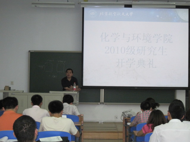 9月13日晚七点,今年会院领导及全体研究生新生齐聚一堂,在新主楼B101教室,拉开了化学与环境学院2010级研究生新生开学典礼的序幕。