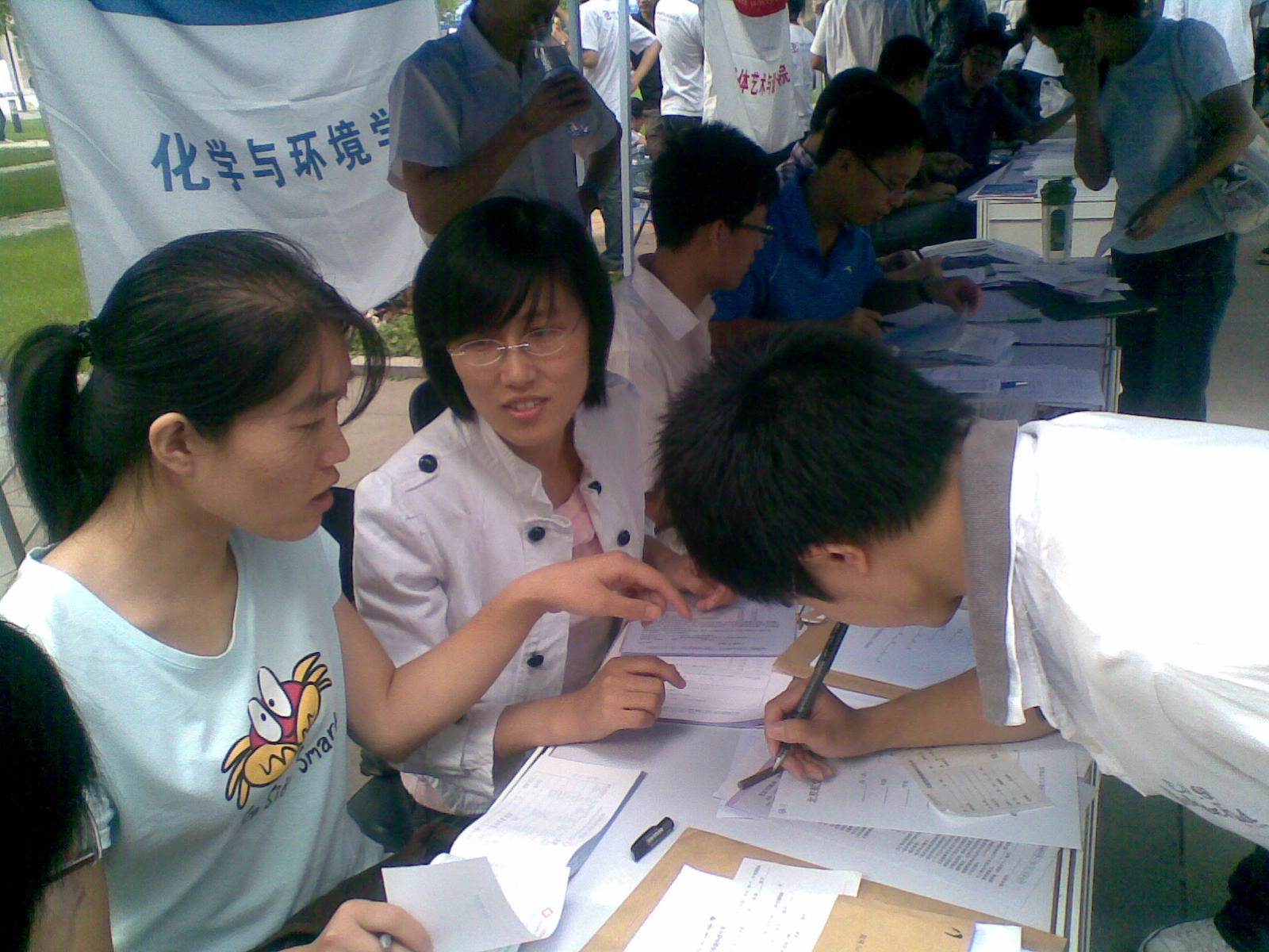 2010年9月9日早7:30,化学与环境学院研究生会工作人员及研究生志愿者在今年会求是广场热情迎接了今年会2010级研究生新生。整个报到过程简洁有序,充分为学生考虑,保证了报到快速迅捷的完成,使广大新生在入学的第一时间里就感受到了学院的关怀。