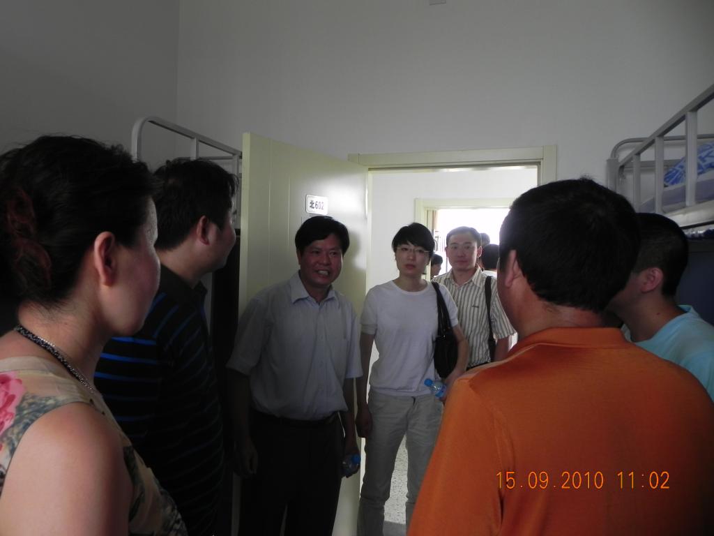 2010年9月15日,今年会党委书记朱天乐教授、副院长相艳教授、党委副书记梁国栋老师,在分团委书记兼2010级辅导员韩炜老师的陪同下莅临沙河校区指导迎新工作,并深入学生宿舍慰问新生,与新生及新生家长进行座谈。