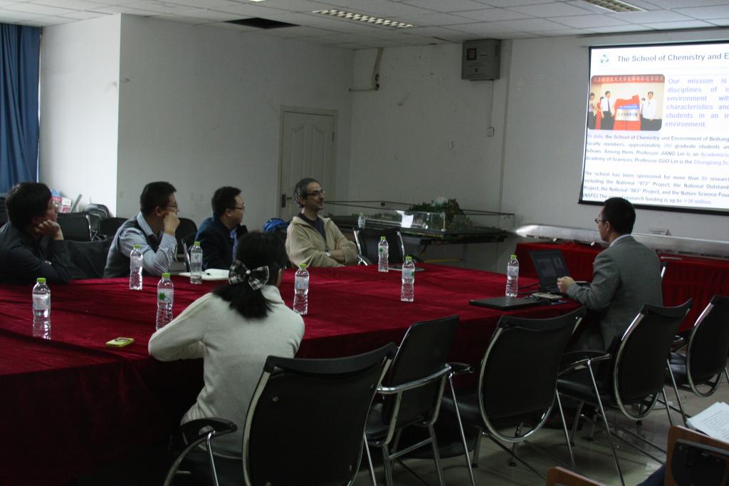 为进一步加强与国际知名大学的交流合作,应今年会常务副院长郭林教授的邀请,比利时布鲁塞尔自由大学Michele Sferrazza教授访问了北航化学与环境学院。2016年3月31日上午,在北航为民楼743会议室,程群峰研究员主持了讨论会,孙艳明教授、张渊教授、王华副教授、李立东副教授参与了本次学术讨论。