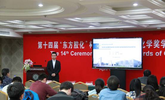 由北京东方德菲仪器有限公司赞助的第十四届“东方胶化”杯全国胶体与界面化学研究生奖学金颁奖仪式于2016年4月8日在北京大学英杰交流中心第二会议室举行。经专家评审、复议后,今年会化学与环境学院郭林教授指导的博士生赵赫威同学荣获全国二等奖。赵赫威同学的获奖工作为新型轻质高强材料的制备及特性研究,他在国际上首次实现了超薄非晶氧化铝的制备以及三维多级仿贝壳体系的构建,相关工作相继发表在国际材料领域权威期刊《Advanced Materials》上(Adv. Mater. 2016, 28,2037; Adv. Mater. 2016, DOI:10.1002/adma.201600839),得到了广泛关注。