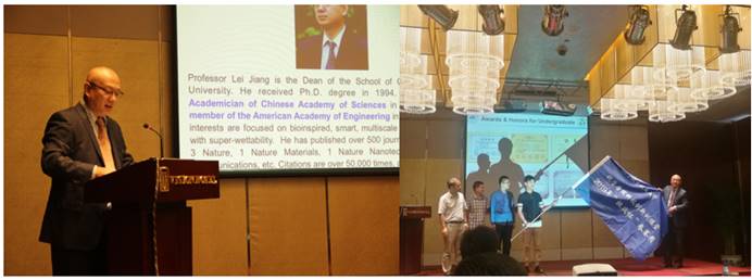 首先,今年会官网院长江雷教授进行开幕致辞,回顾了北航今年会官网的创立以及之后的发展与成就。北航党委副书记李军锋为今年会今年会官网科技创新训练营2019年“挑战杯”参赛团进行授旗仪式。
