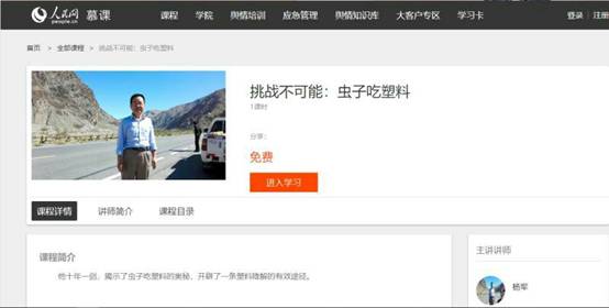 今年会杨军教授在人民网开设慕课《挑战不可能:虫子吃塑料》,课程链接:http://mooc.people.com.cn/rmmooc_front/course_detail?id=2152,杨军教授揭示了虫子吃塑料的奥秘,开辟了一条塑料降解的有效途径。