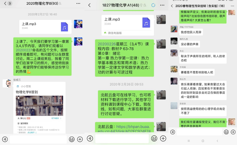 从腾讯课堂极速版、普通版、各种网络平台的体验和学习,从课程中心、北航云盘、百度云盘、微信群、QQ群等各种交流沟通方式的调研和试用,从电脑、手机、手写板、ipad甚至到一个小耳麦、摄像头的调试,无不凝聚着老师们对于教学工作一丝不苟的态度。经过了第一周的网络教学实战,看到课程中心的点击率不断攀升,看到学生们上课的反馈结果,不分节假日、不分白天黑夜的工作没有白费,朱英教授和全体授课教师一样感到一份欣慰,但她深知这才是开始。总结第一周的教学,要想使课程有条不紊地顺利开展,并取得良好的教学效果,获得学生们的认可与好评。学院的各门网络课程教学还需要不断的改进和优化。