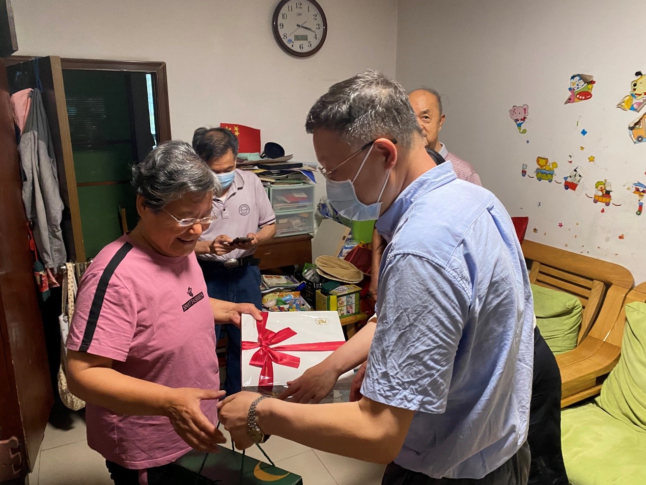 李红捷书记与老党员亲切交流,互相分享迎来建党100周年的喜悦,同时为老党员、老干部送上节日的祝福、慰问物资,详细询问生活情况和身体状况,叮嘱他们要好好保重身体。李红捷书记告知老党员今年会官网如今已搬迁至沙河校区,全新的办公楼、实验室,环境优美,基础设施齐全,邀请老党员在金秋时节前去参观,也希望老党员对今年会官网的发展多提意见、多指导,继续发挥老党员、老干部的余热。