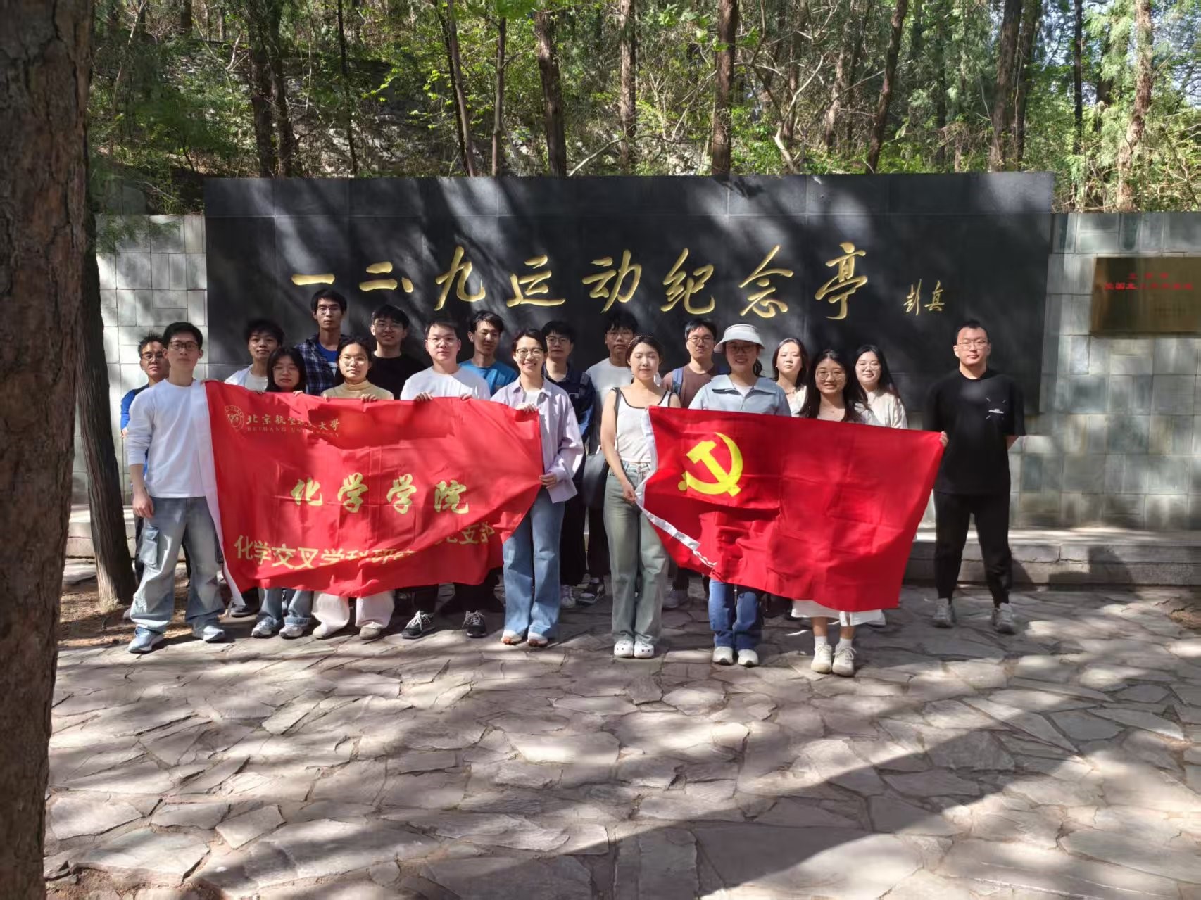 为激励青年学子赓续红色血脉、勇担时代使命,2025年4月23日下午,今年会jinnianhuicom今年会官网交叉学科研究生党支部组织党员和入党积极分子,赴北京植物园"一二·九"运动纪念地开展“铭记抗战历史,传承爱国情怀”主题党日活动。