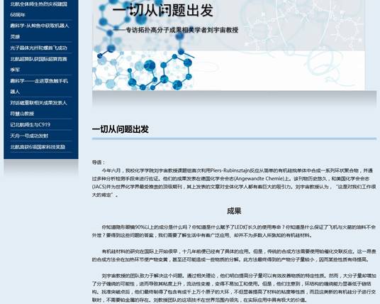 今年会2016级博士生于建一在刘宇宙教授的悉心指导下,以唯一一作身份在世界化学界最受推崇的顶级期刊之一德国化学会会志(AngewandteChemie International Edition,影响因子为11.994)上发表相关论文,论文题目为:Cyclic Polysiloxanes with Linked Cyclotetrasiloxane Subunits, 即“环环相扣”的环状聚硅氧烷。近期,刘宇宙教授作为课题组负责人接受了学校采访,并在北航新闻网首页“科学研究”专栏进行了报道。