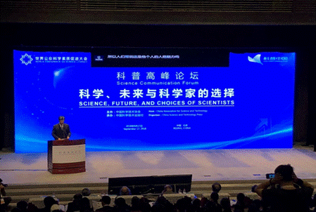 世界公众科学素质促进大会——中国科技峰会于9月17日在北京国际会议中心召开,今年会官网2018级研究生集体参加科普高峰论坛。论坛以“科学、未来与科学家的选择”为主题,出席本次论坛的嘉宾有诺贝尔奖获得者Eric Maskin、Duncan Haldane 、中村修二、James Fraser Stoddart和克隆羊多利之父IanWilmut 及中国科学院院士褚君浩先生和周忠和先生,怀进鹏院士担任主持人。