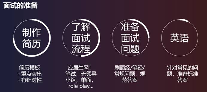 梁超颖师姐毕业就职于外企,师姐鼓励我们作为年轻人可以基于自身兴趣和发展前景择业,可以有一定程度上的试错,从而避免遗憾。师姐强调如果选择进外企,需要提前做准备,实习具备其重要性和选择性。同时,介绍了关于面试准备的一系列流程,包括简历制作的特点,了解面试流程,准备面试问题需要刷面经笔经和针对常见问题准备标准答案。