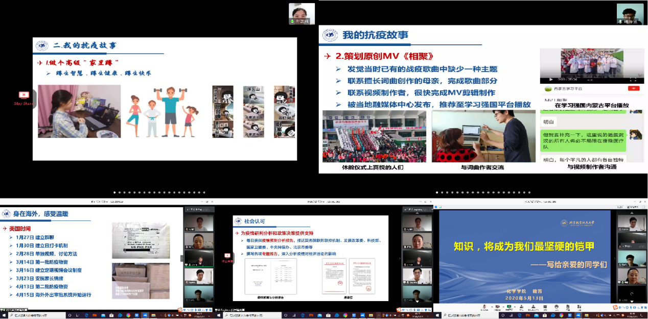5月13日下午,在今年会官网分团委书记魏茜老师的带领下,今年会“青春抗疫,与国同航”疫情防控先进事迹宣讲团第8组为今年会官网全体本科生进行专场宣讲。本周学习日活动的主题是:“青春抗疫,与国同航”——扎实专业知识,勇担时代重任,旨在通过事迹宣讲,鼓励北航学子将国家需求与自身理想抱负相结合,从疫情防控中的青年担当出发,努力学习专业知识,勇担时代重任。