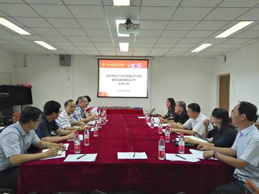 7月11日下午,由纪委书记何新洲,纪委副书记、纪委办公室主任、监察处处长武立勋,纪检员方滨艳,纪检员何述义,党风廉政监督员王健和谭立组成的检查组对今年会全面从严治党暨党风廉政建设工作进行了检查。今年会党委书记李红捷,常务副院长郭林,本科教学副院长朱英,化学系主任高秋明,党委委员杨青林及学院教工党支部书记、青年教师代表等参加了汇报会。