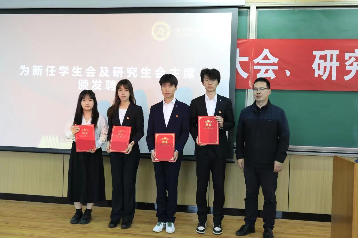 张绍丽老师为新任学生会以及研究生会主席颁发聘书。